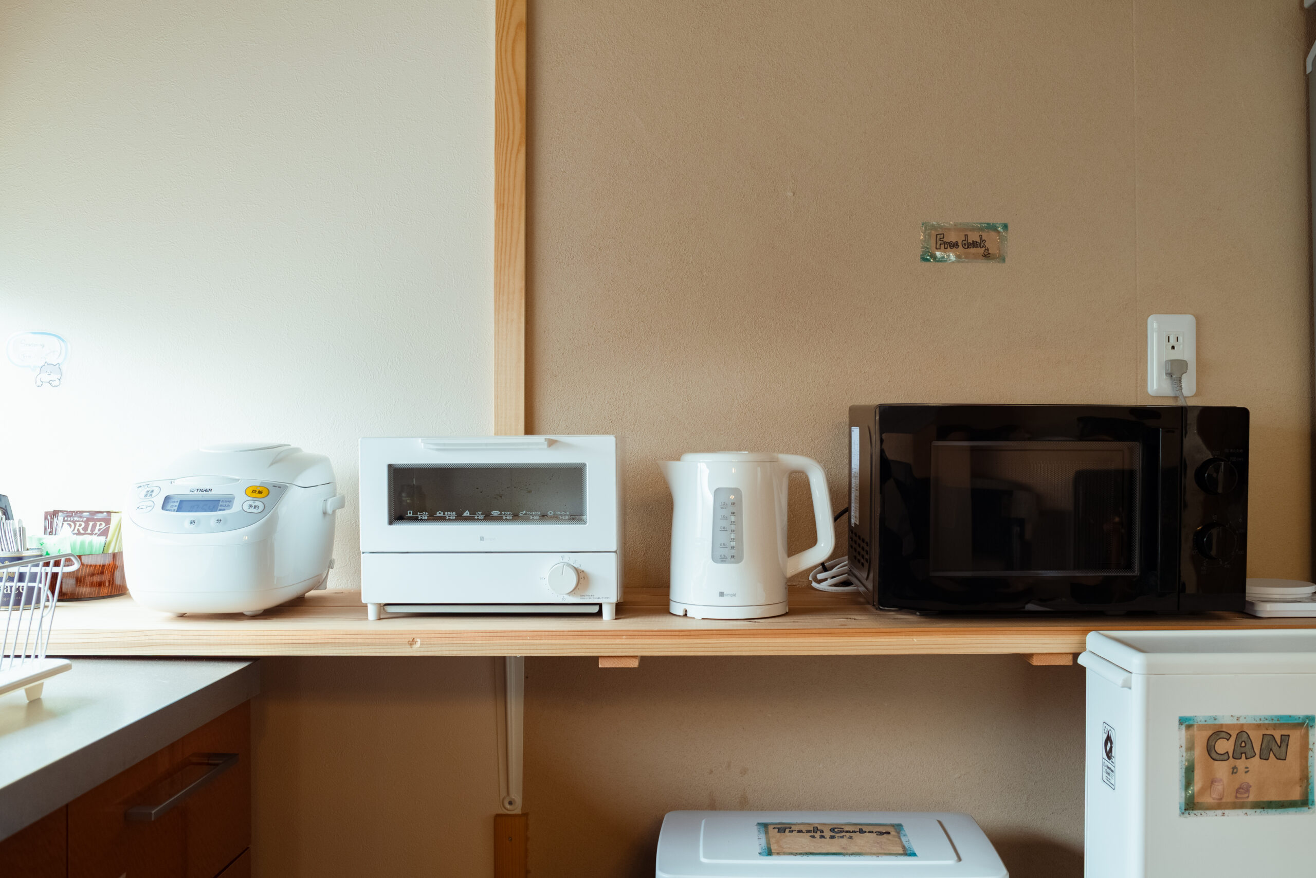 - キッチン(冷蔵庫、レンジ、トースター、簡単な調理器具、調味料、食器)