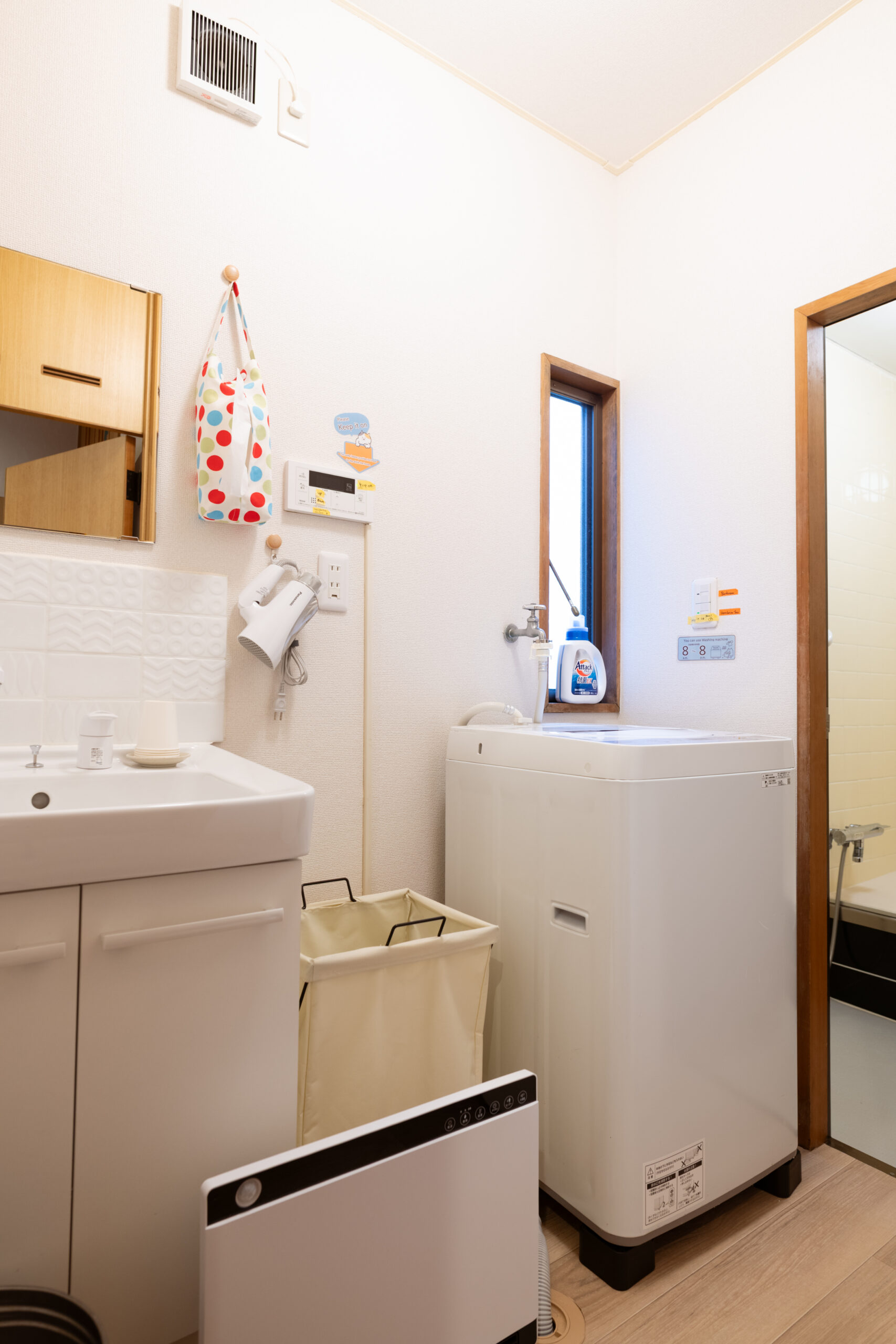 ※衣類乾燥機がないので、必要な方は近場のコインランドリーをご利用ください。室内に洗濯物干しロープはあります。