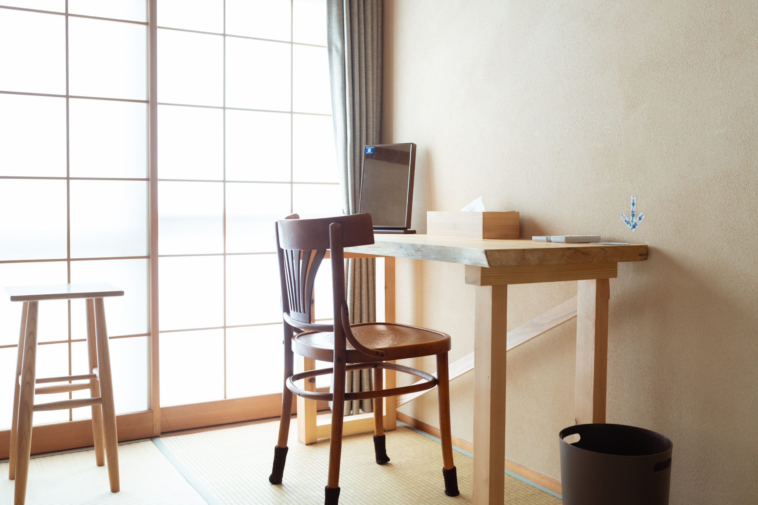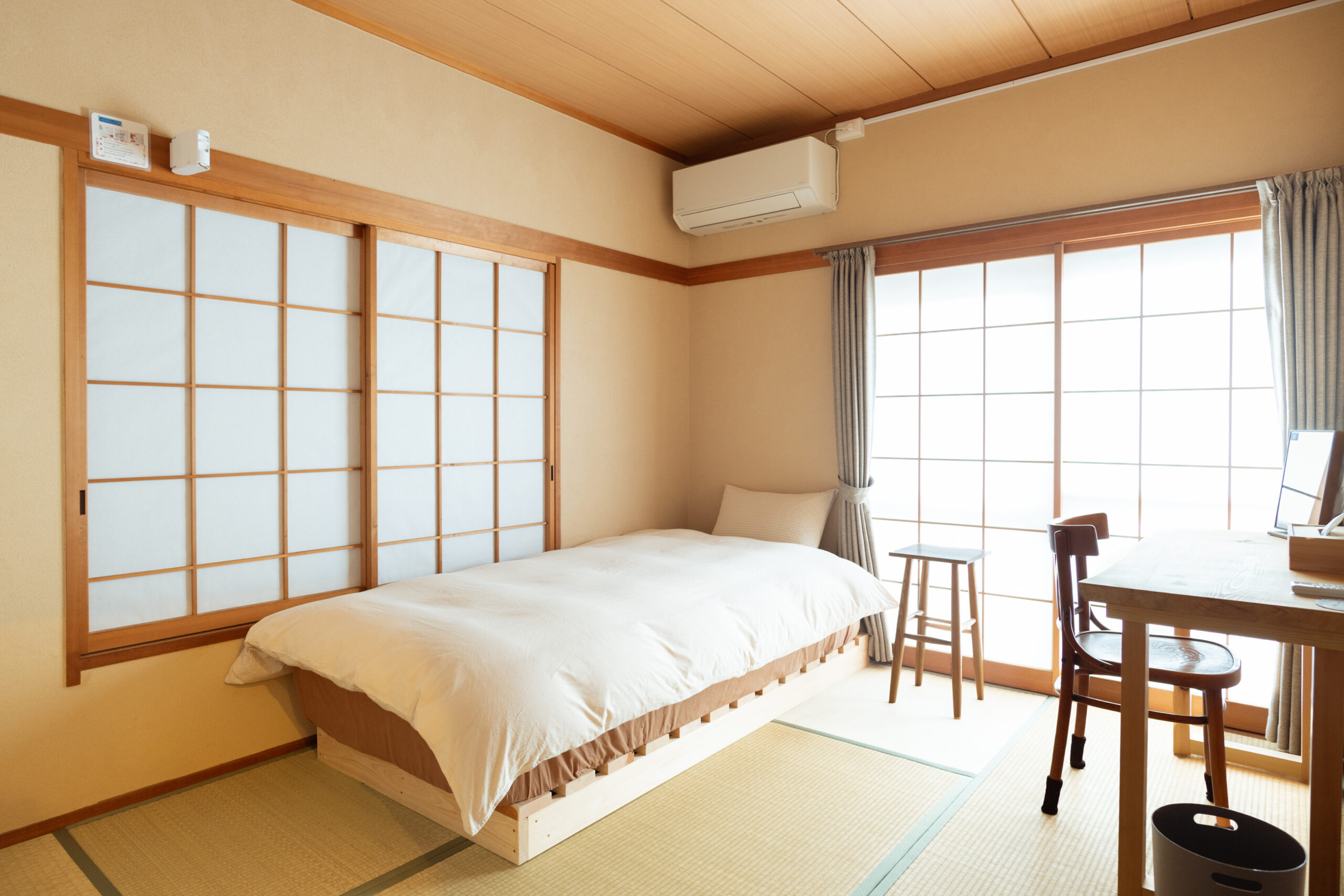 Popotel Threeの客室は本館に1名和室一部屋、1名洋室二部屋、2名洋室一部屋をご用意しております。